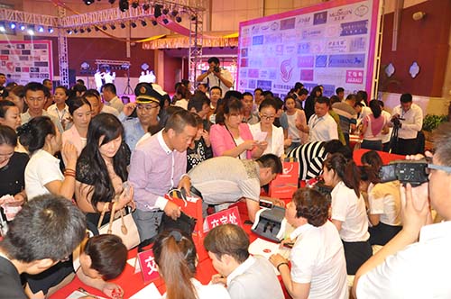 8月6日活動當(dāng)天,四季青國際服裝城招商發(fā)布會現(xiàn)場人頭攢動、熱鬧非凡,一場以四季青加盟品牌的時尚服裝秀正在精彩上演。主辦方臺上為大家演示全新的020電子商務(wù)運營模式,臺下的觀眾邊聽邊記,更有著急的客戶,按耐不住激動的心情,紛紛要求交錢定鋪。工作人員穿梭于客戶之間,一一回答他們提出的問題。